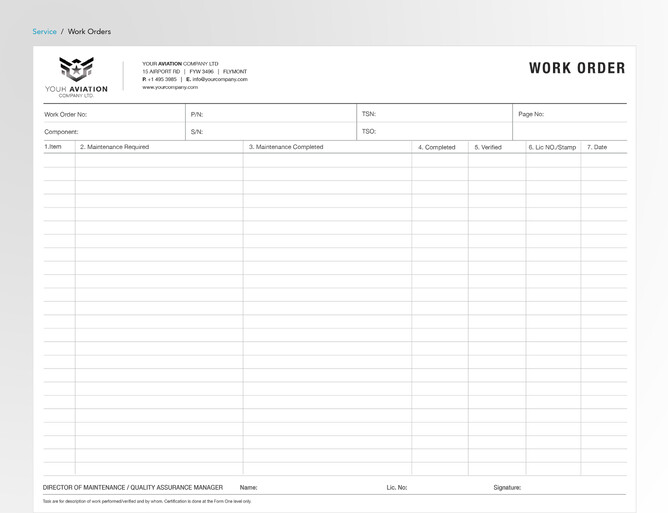 Your team is working hard day in day out to get those flights flown or those aircraft maintained and ready to fly again. They need to have the reports and stationery they use regularly customized for them to make them efficient and effective in what they do.