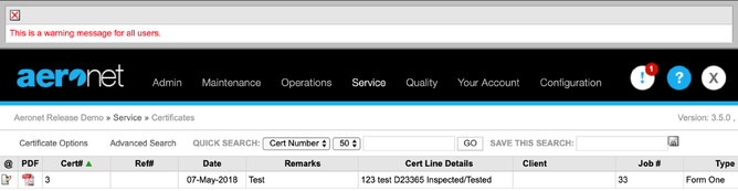 Warnings are best used when the Follow Up is important enough to justify a note to show at the top of every page of the Aeronet software until a user clicks the red notification dot to read and clear the message. Follow ups like time sensitive announcements, things that are more important than just a general message out or that require action by users could be a reason to use the Warning Follow up type.